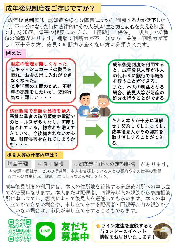 カテゴリー 認知症関連 (0) イベントお知らせ (0) 通信お知らせ (2) その他 (0) 2026/01/15 加住ぽかぽか通信 冬号を発行いたしました 定期発行している「加住ぽかぽか通信」冬号を発行いたしました。本年も住民の皆さまが安心して過ごすことができるよう尽力してまいります。よろしくお願いいたします。 1