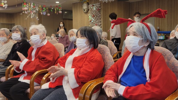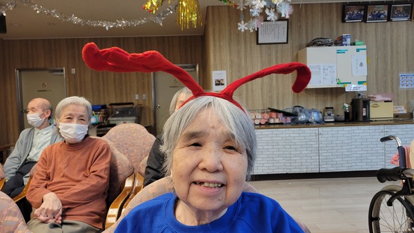 今年最後の大型行事のクリスマス会を、一足早かったのですが開催致しました。今回も職員有志バンド「ココナッツ」の皆様に素敵なクリスマスソングの演奏を披露していただきました。利用者様にもクリスマスコスプレをお願いするともに、インフルエンザウイルスなどの感染防止のためマスクを着用していただき、一緒に大合唱していただきました。少しではありますが、ファミーマイホームからすべての利用者様に、プレゼントを贈らせていただきました。