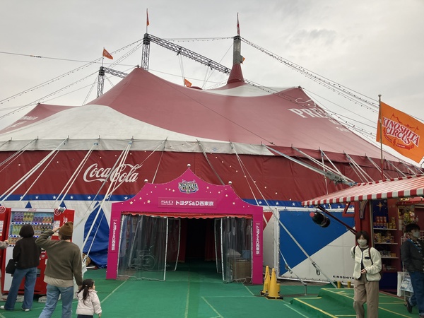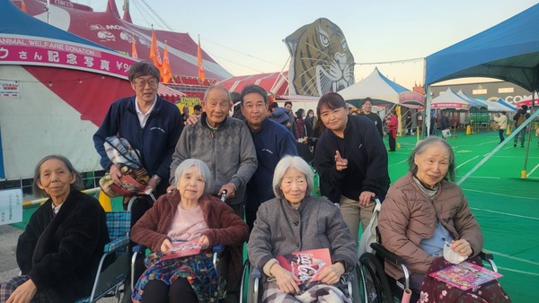 この度、木下サーカス株式会社様から東京善意銀行様を通じ、立川立飛特設会場での特別公演の招待チケットをいただきました。小雨が降る中でしたが、せっかくの機会でしたので利用者様に観覧していただきました。かわいい動物から猛獣、空中ブランコやオートバイショーなど、盛りだくさんの内容で初めてサーカスをご覧になった利用者様や職員もおり、とても興奮して帰園されました。今回このような機会をいただき、改めて木下サーカス株式会社様に厚く御礼申し上げます。