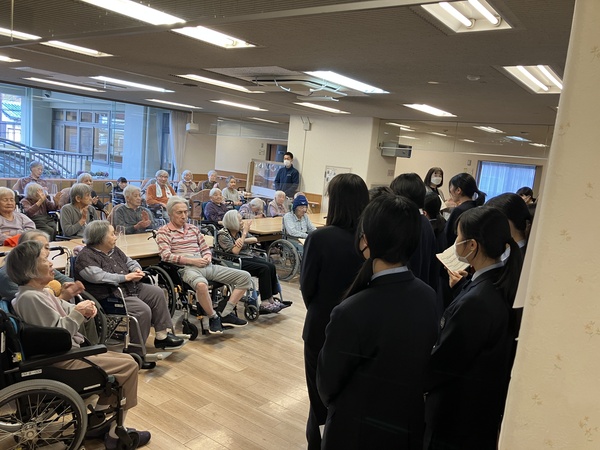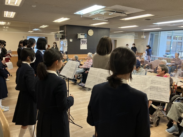 今年も東京純心女子中学高校の生徒さんが素敵なクリスマスカードと合唱・演奏のプレゼントを届けに、ファミリーマイホームに来園してくださいました。3階食堂から2階、デイルームと全部で3回も演奏していただきました。毎年、生徒さんの清らかな音色と歌声に心が洗われる感覚になるのは、私だけでしょうか!東京純心女子中学高校の生徒の皆さん、毎年素敵な時間をありがとうございます!