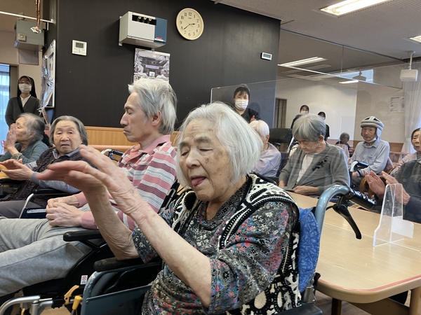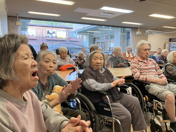 今年最後の大型行事のクリスマス会を、一足早かったのですが開催致しました。今回も職員有志バンド「ココナッツ」の皆様に素敵なクリスマスソングの演奏を披露していただきました。利用者様にもクリスマスコスプレをお願いするともに、インフルエンザウイルスなどの感染防止のためマスクを着用していただき、一緒に大合唱していただきました。少しではありますが、ファミーマイホームからすべての利用者様に、プレゼントを贈らせていただきました。