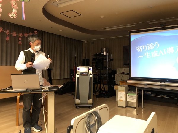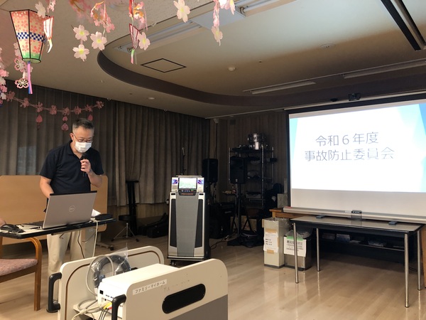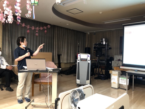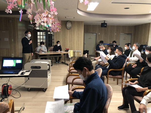 ファミリーマイホームでは、高齢者福祉施設で法定で義務付けられている研修以外にも様々なテーマで、毎月1回研修会を企画し開催しております。この施設内研修会は、外部研修会に参加した職員や各課の課長・主任が講師を担っており、他の職員に研修会などで得た最新の知識や技術を伝えるという目的があります。さらに重要なことは、講師となる職員自身が理解していたつもりであっても、いざ他者に研修という形で自分の中からアウトプットするためには、もっと深度の高い理解が必要であり、相手に理解してもらうための「伝える力」も必要となってきます。このように、施設内で職員自身が講師役にも受講生役にもなることで、共に学びあい高めあうことができるのです。そのことが、日々の利用者様へのサービス提供の質の向上につながることを信じ、日々職員も精進しております。