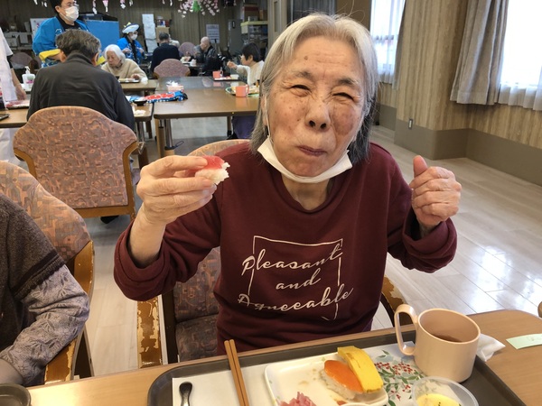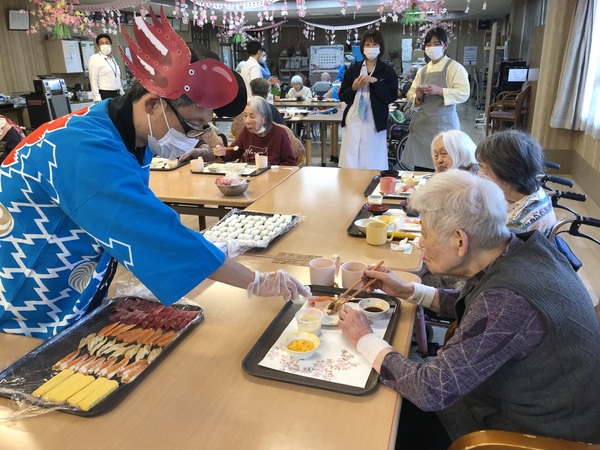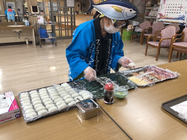 ファミリーマイホームでも、ソフト食をいち早く導入し、お寿司のソフト食までご提供できるようになっています。参加してくださった利用者様の反応もよく、どこのカウンターもほとんどネタが完売してしまいました。