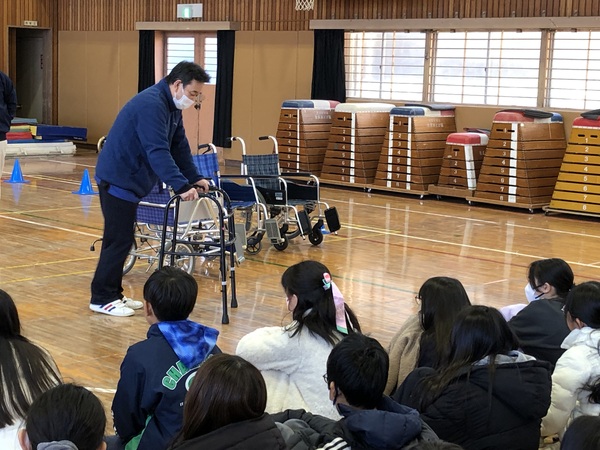 ファミリーマイホームの運営母体は、社会福祉法人清心福祉会です。社会福祉法人は、その高い公益性にかんがみ、地域の福祉ニーズ等を踏まえつつ、法人の自主性、創意工夫による多様な地域への公益的な貢献活動が求められています。ファミリーマイホームでは、その一環として、八王子介護フェアなどの地域福祉イベントの企画・運営や近隣の小中学校や老人会、社会福祉協議会などに出張講座などを行っております。この度、八王子市立宇津木台小学校の6年生を対象に、「高齢者とのコミュニケーションの方法や車いすなどの福祉機器の使用方法」の出張授業を行ってまいりました。車いすの操作方法の授業では体育館をお借りして、車いすを自走する体験や坂道での車いすの介助方法、重りを装着して片麻痺の身体障がいの体験などを大勢の児童の皆さんに実践していただきました。当日ご協力いただきました6年生の担任教員の先生、大変ありがとうございました。