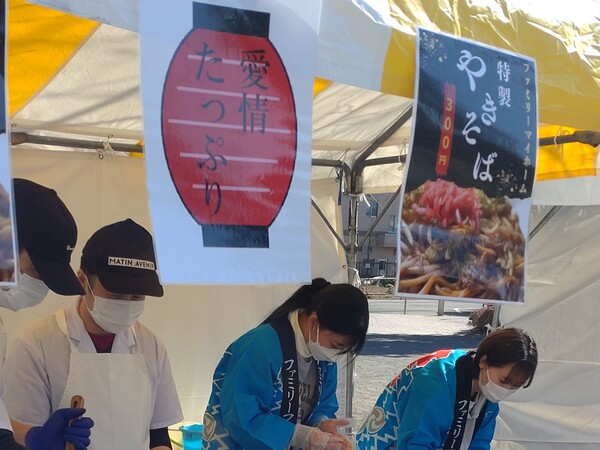ファミリーマイホームは、近隣の日本語学校と協力提携を結んでおり、日本の言語や文化を学習する留学生への就労支援を行っております。1年生は午前中に学校の授業があるため、午後からファミリーマイホームでのシーツ交換業務や夕食の準備・後片付けもしくはデイサービスセンターでアルバイトをしていただいております。逆に、2年生は午後からの授業のため、朝7時30分から11時30分まで、ファミリーマイホームで朝食の準備から後片付け、入浴介助の補助をお願いしています。将来、介護の仕事に従事したい学生においては、アルバイトでの姿勢や日本語能力などを総合的に判断し、特定技能生として入職される場合もあります。介護業界は人手不足といわれているなか、ファミリーマイホームにおいては安定的に人材の配置や育成ができているのも、このような就労支援が功を奏しているのです。その日本語学校で、「多文化フェスティバル」という文化祭が開催されましたので、ファミリーマイホームも日本代表として「やきそば」を出店させていただきました。宗教上の食文化を配慮し、具材はシーフードにしたソース焼きそばを提供しましたが、売れ行きも好評でした。当日は、創価大学のソーシャルワーク実習中の学生にもお手伝いしていただきました。皆さん、ありがとうございました。