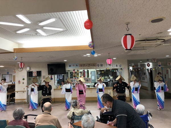 各フロアーではボランティアさんをお呼びし、富山県富山市で歌い継がれている民謡の「越中おわら節」を楽しみました。