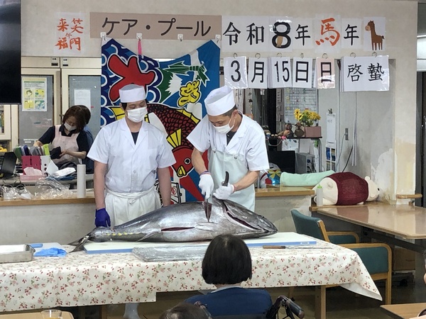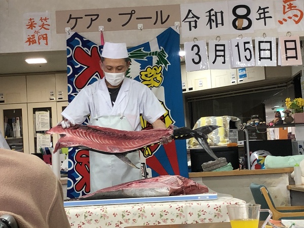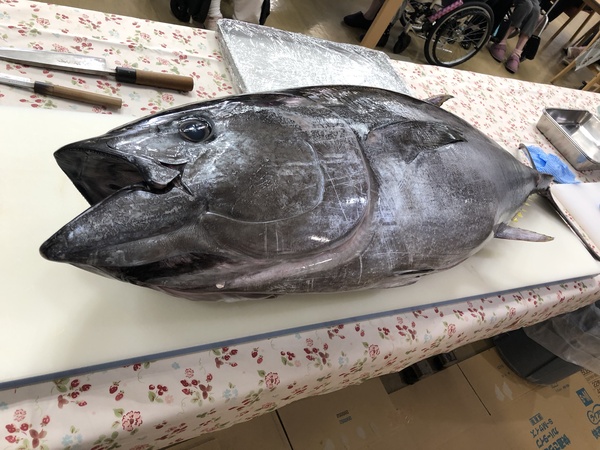 今年度から温暖化の関係で、母の日に行っていた「🐟マグロの解体ショー🐟」を創立記念行事に移行しました。