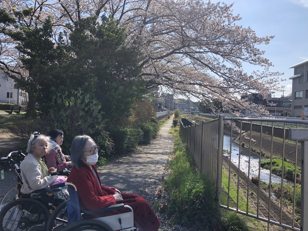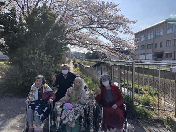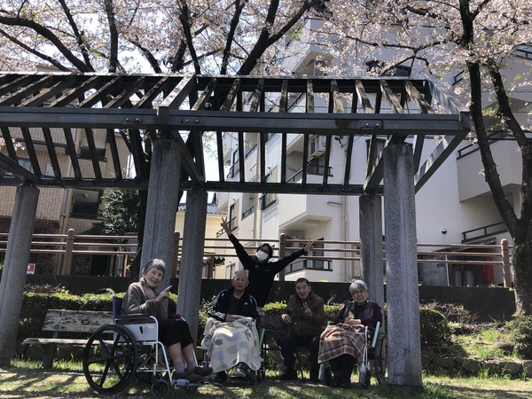 職員が代わる代わる時間を作り、数日にかけてお花見をしました。