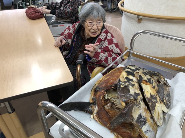 夕方にマグロのカマを栄養課で焼いてもらい、希望した利用者様に食べて頂きました。